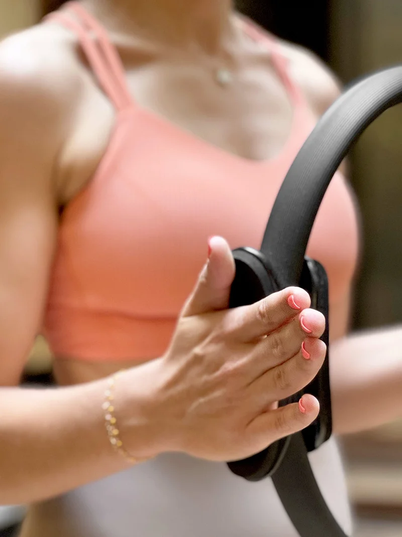 Vous pratiquez le Pilates au sol avec des accessoires comme le ballon, le cercle et les élastiques pour adapter ou intensifier chaque exercice.
